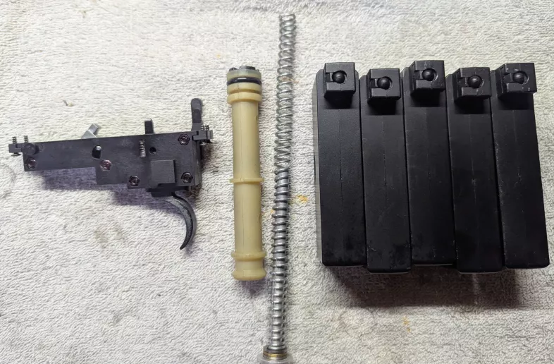 Have 5 magazines, OEM trigger complete, upgrade spring and spring guide. Be around 2 joules with this spring. +$15 for shipping