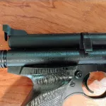 This rare pistol is in good plus condition. The seals are good. It has a little surface rust on the barrel shroud. Doesn't affect performance. A nice accurate budget priced shooter.