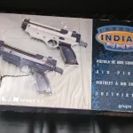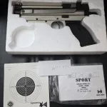 This is a high-quality Cometa Indian spring-piston air pistol, renowned for its ease of cocking and robust build quality. Manufactured in Eibar, Spain, the pistol in the image features an attractive nickel or chrome finish. It's a single-shot, break-barrel action that uses .177 caliber (4.5mm) pellets and has a velocity of approximately 450-500 FPS.