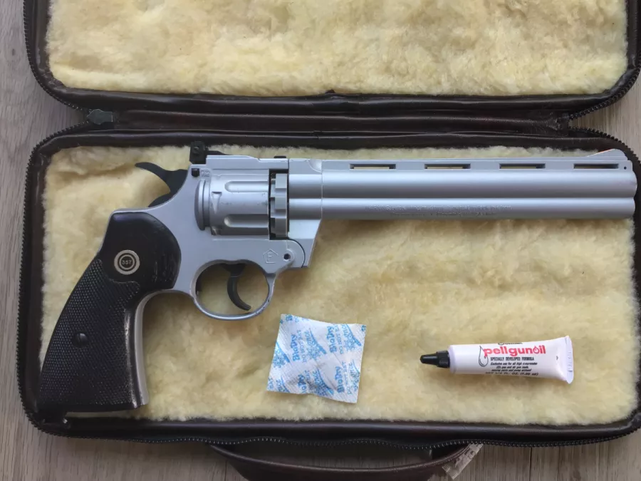 Cased Crosman 357-8 Silver