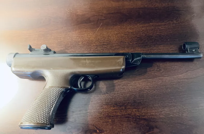 Diana made the model 5 pistol we are looking at here from 1958 to 1978. The model 5 is a large breakbarrel spring-piston air pistol. Overall length is slightly more than 15-3/4-inches, with the barrel being slightly more than 7 of those inches. The weight is 3 lbs. 1 oz.