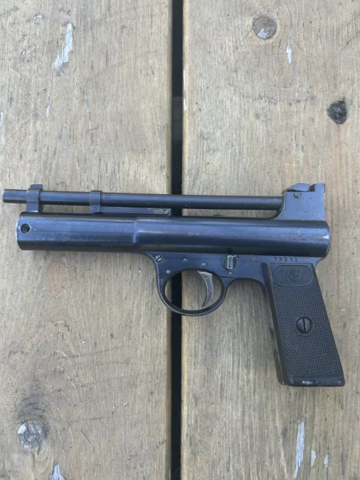I have this really nice little hard to find Pre-War ( 1925-1930) Webley and Scott MkII airgun in 177 cal. It does crank but piston does not hold back. i believe is the trigger return spring that does not push the trigger all the way back to catch and hold the piston back. It also miss the rear sight and a few screws. Beside that its completel, finish is nice and there is no rust Definitely worth fixing . The grips are damages at the heel but this is an easy fix ( I can fix them for few extra bucks) .