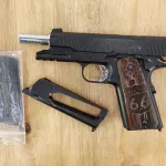 Rare discontinued Blackwater BW1911 R2 with real wood grips, it has been lightly used and is working at it should do, no leak. Included the gun, one mag, wood grips and original grips.