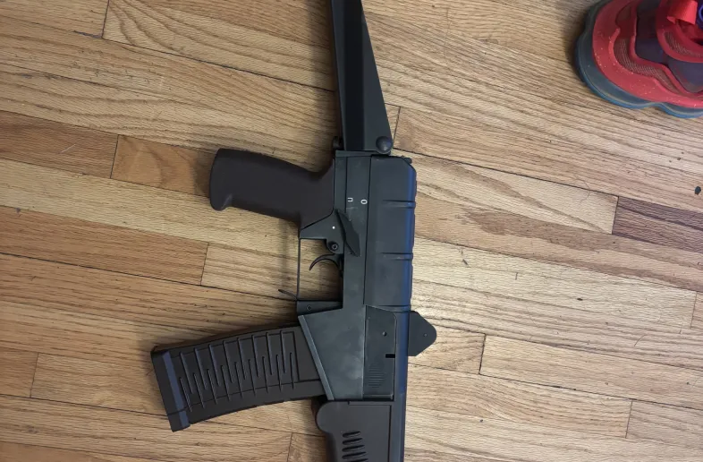 Stamped steel receiver, cast iron gas block, full metal construction airsoft gun, internally upgraded, comes with a 11.1v lipo battery , runs like a charm