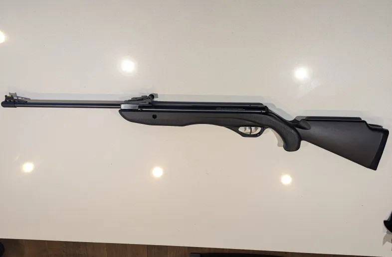 Well used, but in great condition. Has fibre optic sights and a 3/8" dovetail rail for optics.