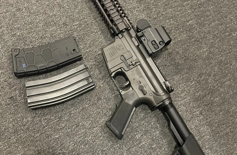 Like new condition but missing back plate for stock. Comes with 2 mags