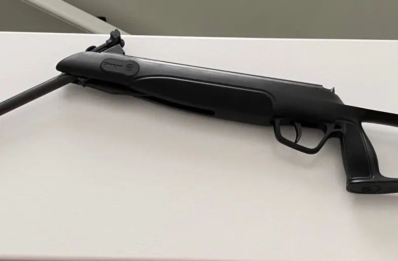 for sale is a used Stoeger® X3 Tac 495 FPS Synthetic Stock Air Rifle, that my kid has outgrown
