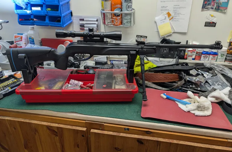 - Stability & Stock: Includes a foldable, adjustable bipod mounted on side rails, and a synthetic stock with an adjustable cheekpiece.