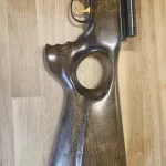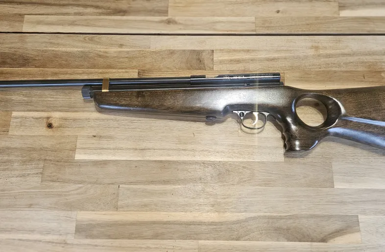 Expect 60-70 shots on 2 standard CO2 cartridges. Incredibly accurate. Drilled and tapped for the sight of your choice. Full wood market stock with Gold anodized trigger, muzzle break and bolt.