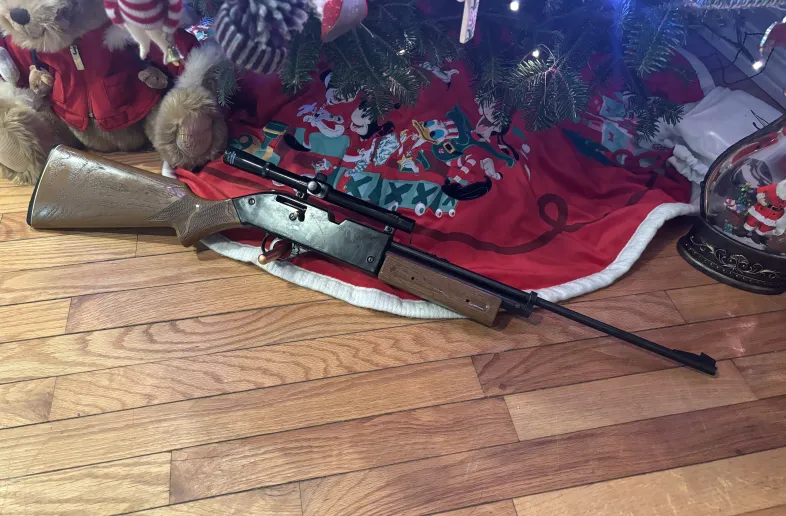 It works well and holds air. Has some marks on it but is in good shape. Comes with Bushnell 4x scope.