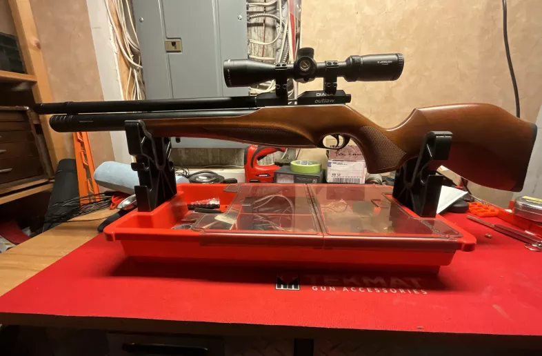 Excellent condition Diana Outlaw pcp Airgun. This is a PAL rated airgun (1000 FPS ) so a PAL will be required. Gun is tight with no leaks. Comes with 3 magazines (1 stock 2 aftermarket ) 2 single shot trays, fill probe, Athlon Talos 3-12x40 scope and user manual. Price includes shipping. I am open to offers. *** finally got my chronograph in the mail yesterday. So this outlaw is averaging 1000 FPS with 8.4 gr pellet and 960 FPS with 10.3 gr pellet.