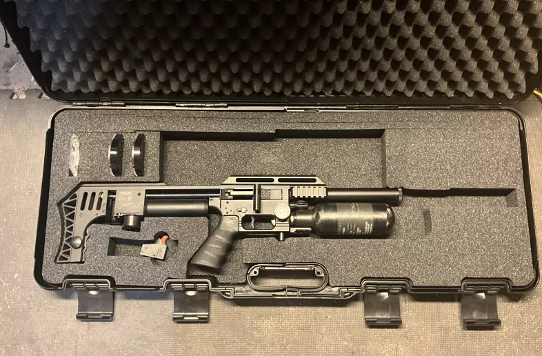 Excellent condition FX impact M3. Shot very little. Gun is tight with no leaks. This is one of the most tunable air guns out there. 2 hi-cap mags, Saber tactical adjustable butt stock, single shot mag, extended fill adapter, original case and manual. Asking $2200 shipped or best offer and all offers will be considered.Try your trades.