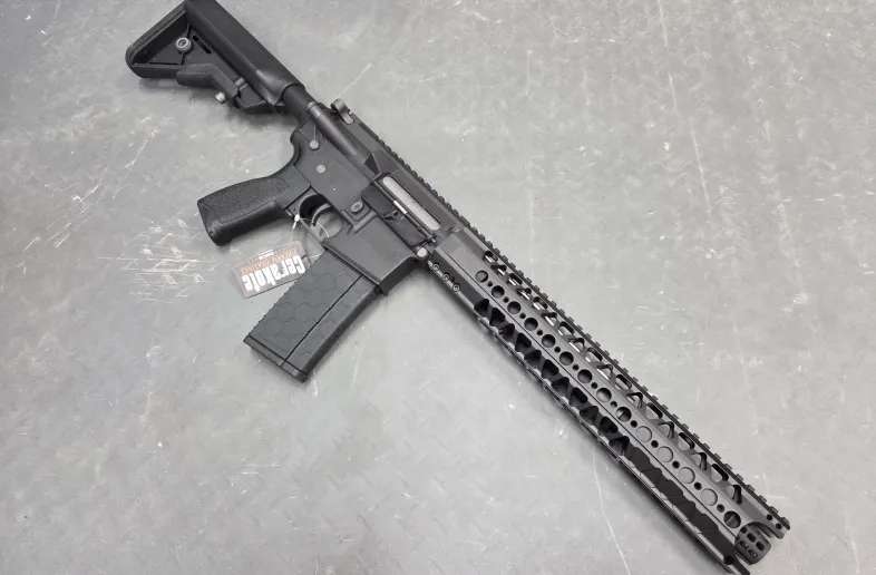 Includes one magazine, flip-up iron sights as well as one 7-slot and one 12-slot accessory rail