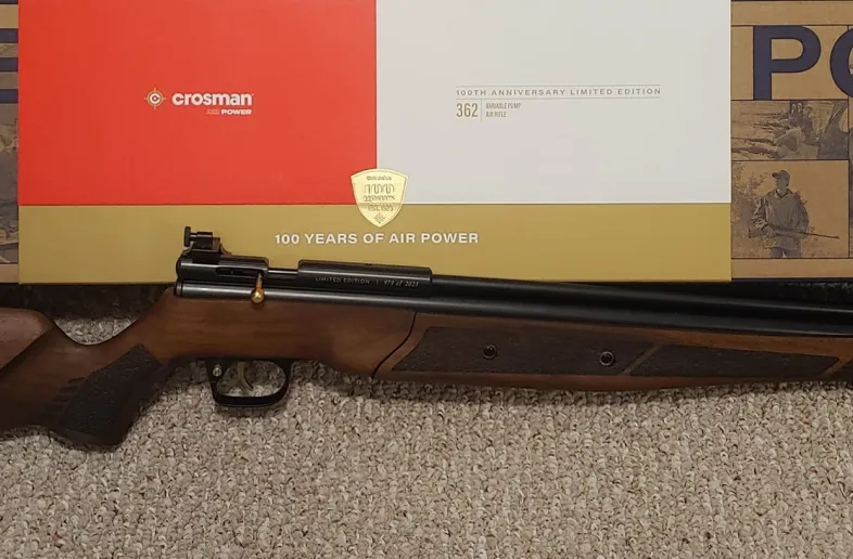 Ultra-rare limited edition 100th year anniversary Crosman C2023 (362). .22 cal. Williams peep sight, steel breech, brass hardware, Turkish walnut.