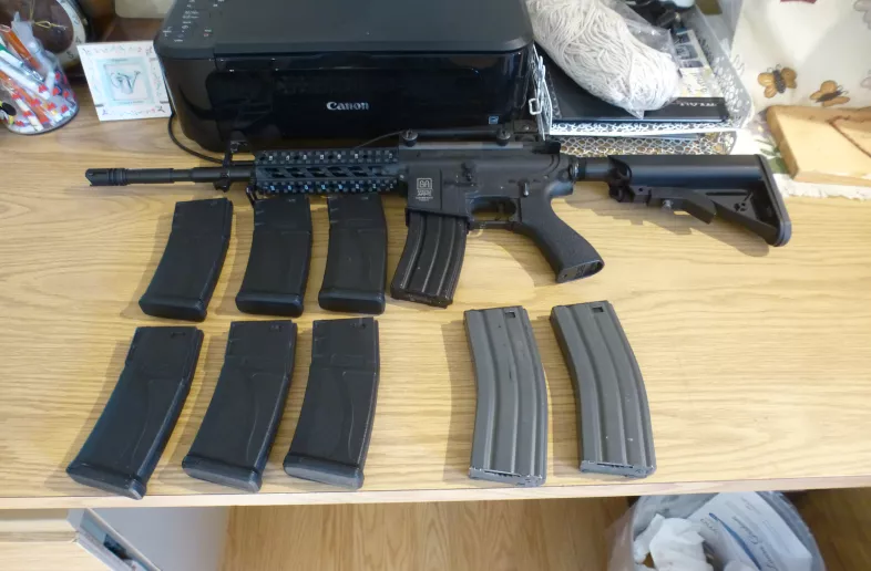 G&G cm16 airsoft gun with 6 140rd midcaps and 2 450rd mags (The mag in the gun isn't included as the mag is sold) but the rest are still for sell