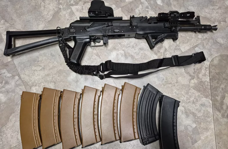 For sale LCT AK105 w/holographic (built in sight protector, also comes with cloth sight cover), pic rail forwnd with flashlight and mount (original forend also included), 8 mid-cap magazines, sling, and 1200mah lipo battery. Everything works great and is in very good condition, just need to downsize my collection.