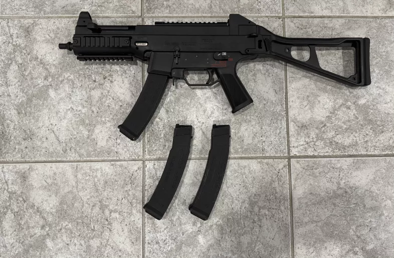 9mm variant of the famous UMP45. You can get .45 ACP mags for this as well if you prefer the stick mag design.