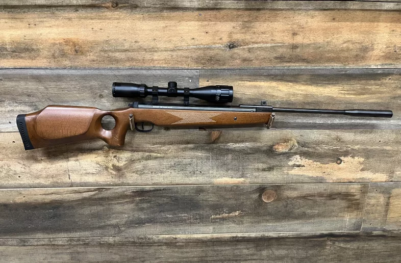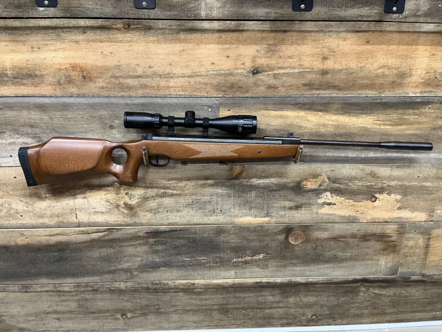 Unused Ruger Air Hawk Elite pellet rifle. .177 caliber, 490fps with factory mounted 3-9 scope in a thumbhole target stock. This is a nice heavy rifle that has sat unused with the original box, all metal is in like new condition and the wood stock has just a few storage marks on it.