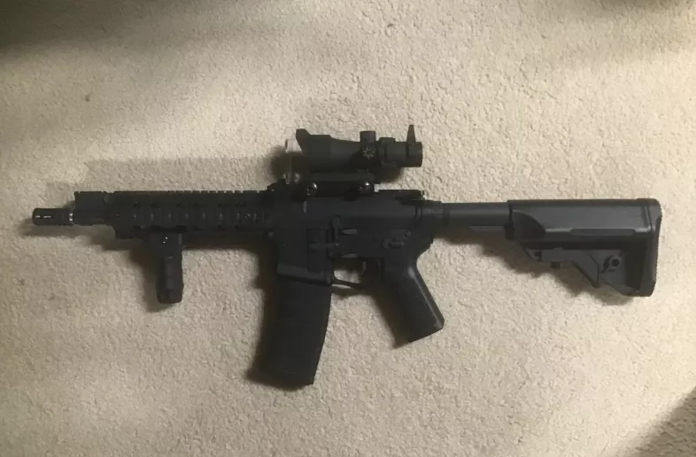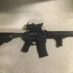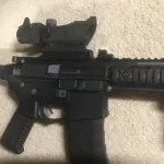 Includes muzzle cover, fwd stock handle, red dot sight and protective shield for the sight.
