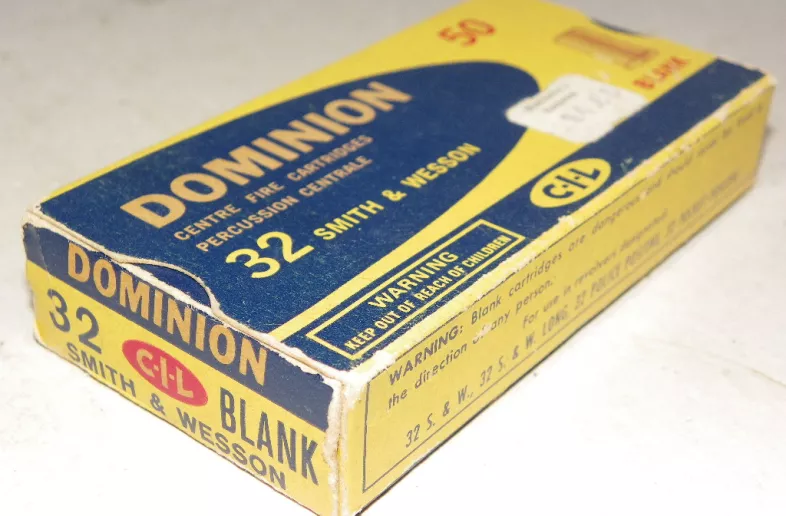 Vintage Full Box of 50 DOMINION 32 S&W Blanks. Pick up only. No Shipping. Located just outside Truro, Nova Scotia. Must have PAL. Check out my other ads, lots of estate ammo for sale. $40.