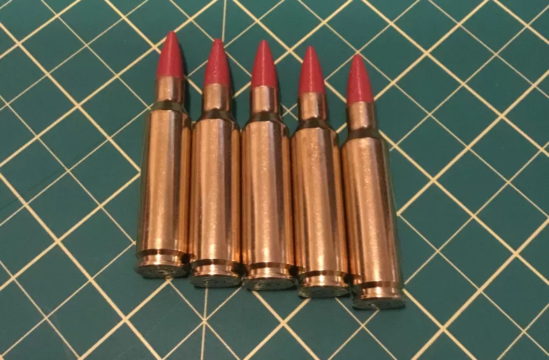 Note these are sometimes once fired rounds. They may be tight on brand new firearms. Use at your discretion and please be careful when ejecting the rounds. The bullets are not made of lead, brass or steel. If dropped from a height, there is a chance the tip will break off.