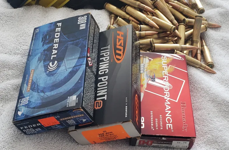 180 rounds of mixed 7.62 x 51 surplus and 59 rounds of hunting ammo (boxes)