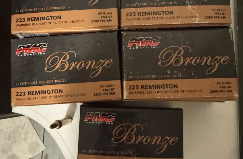 PMC bronze .223 55 gr fmj-bt 250.00 Posted: Oct 23, 2025 Address: Windsor, NS, B0n Category Ammunition Live Ammo Bullet Diameter .22 cal. / 5.56 mm $250 for all or $20 per box Visits: 52 Read our Online Safety Tips Report Ad × Report ad Full Name Email Reason CAPTCHA Leave this field blank