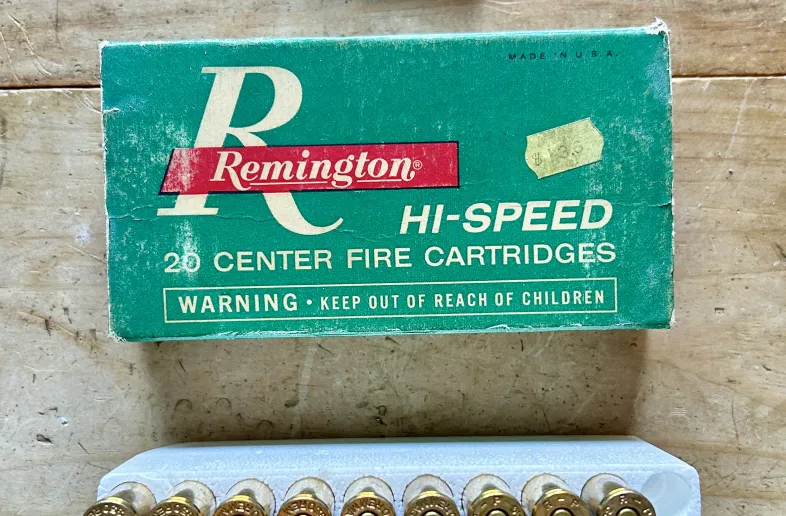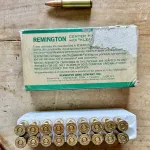 19 rounds vintage Remington .350 Remington Magnum. 200 grain soft point. Box is in decent condition, tear on the back. I think it’s early to mid 1960s manufacture. Cartridges are in mint condition.