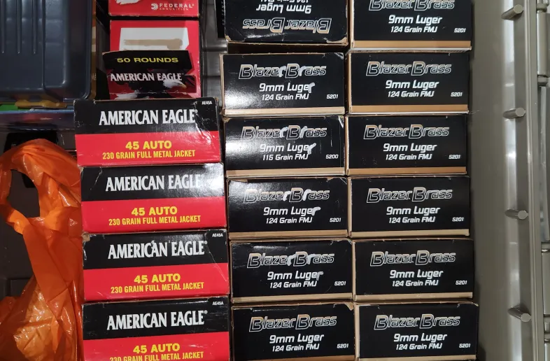I have 18 full boxes of Blazer Brass 9mm 124g fmj and 7 full boxes of American Eagle 45 auto 230g fmj forsale.