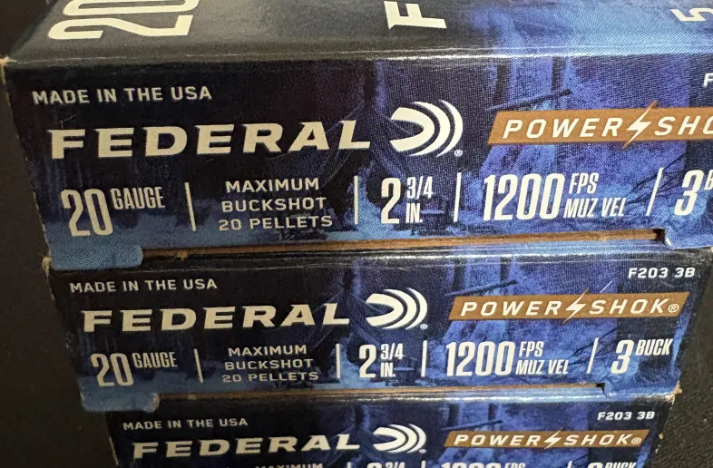 Federal Power Shok 20 Ga 2-3/4″ Max 3 Buck (15 rounds). $25.