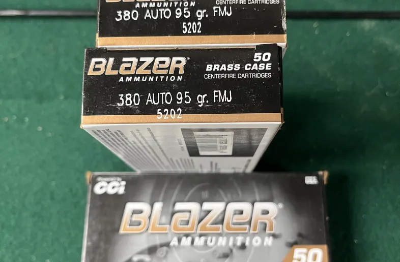 I have 3 boxes of 50 Blazer 380 auto brass cased 95gr FMJ ammunition for sale.