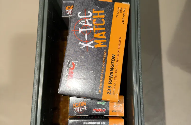 154 rounds X-tac Match ammo in .223. Very consistent and great quality for the cost. Sold my .223 coyote/target practice gun so don’t need these anymore.