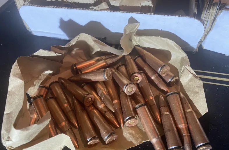 200 rounds of copper washed 7.62 x 39 surplus ammo. Head stamp is 10 75
