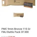 3 pmc battle packs 9mm 115 grain fmj 900 rounds total