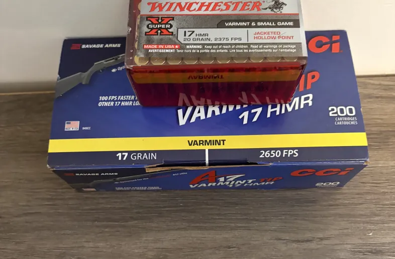 150 CCI and 50 Winchester .17 hmr. Brand new ammo. No longer have a 17 so selling or will trade for 22 wmr ammo