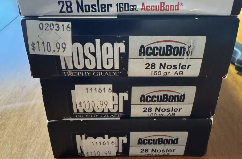 I have 4 boxes of factory Nosler Trophy Grade 160gr Accubonds for a 28 Nosler I’m asking $350.00 for local sale shipping extra I’m located on Vancouver Island