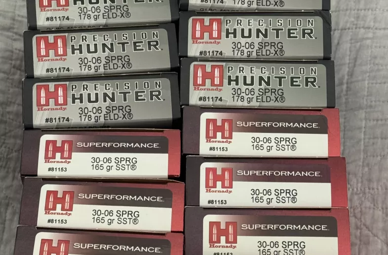 - 8 boxes of .30-06 ELDX 178 gr (Hornady Precision Hunter)
