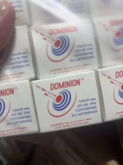 500 rounds of Dominion noncorrosive 7.62x39 FM J.