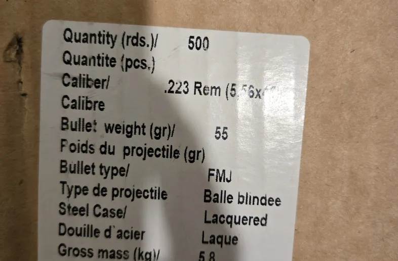 Barnaul .223 Rem 55 grain FMJ. Steel case, lacquered. Made in Russia. Reliable bulk .223 for range use and training. No longer imported in Canada due to the war in Ukraine.