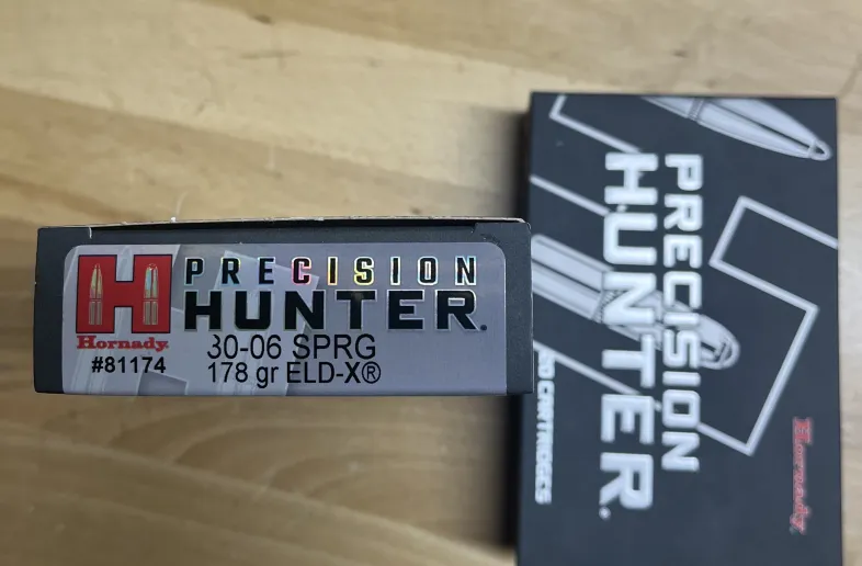 30-06 Hornady Precision hunter ammo loaded with 178gr ELD-X bullets.