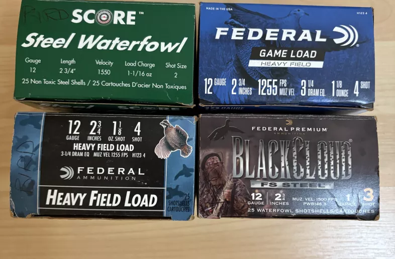 Two full boxes of steel waterfowl(Score and BlackCloud)shot 2 and 3. Full box and 3/4 off Federal shot 4. Asking 75$ for all. Les 780 9197744 Text or call only, no emails please.