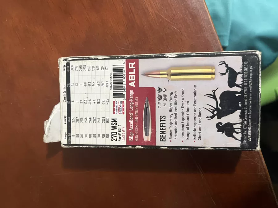 I have 16 rounds of 270 WSM 150GR ACCUBOND LONG RANGE TROPHY GRADE (no longer have the rifle).
