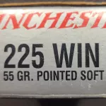 225 Winchester 55 gr pointed soft point 20 Available ($40)