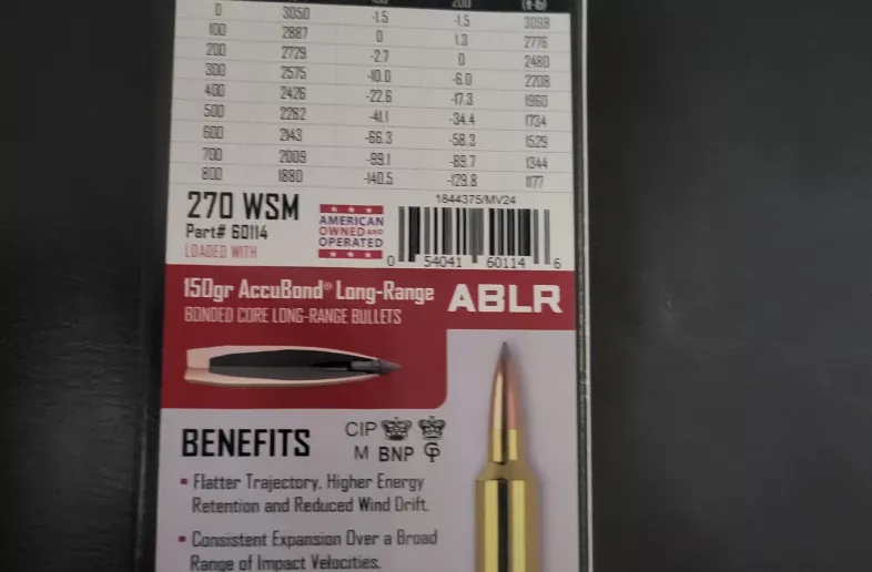 Un-open box of Nosler ABLR 150gr in 270wsm. Buyer pays shipping.