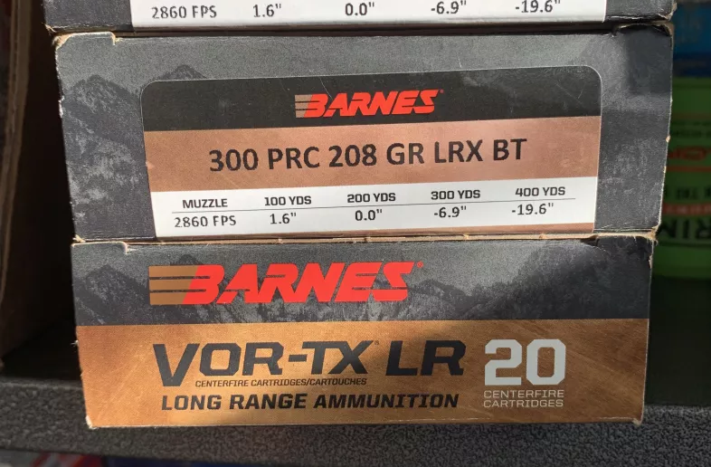 Three boxes 300 PRC Barnes ammo in208 gr LRX BT VOR-TX LR $ 85 each or best offer