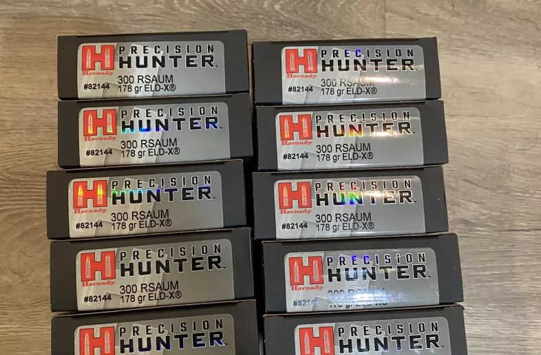 300 short action ultra mag ammo. Hornady precision hunter 178 grain eldx. All new factory ammo. 10 boxes available. $75 per box, $70 each if you take all 10 boxes. Buyer pays shipping
