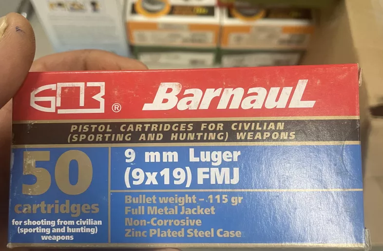 9mm Luger Barnaul 115gr steel case fmj 50rd=16.10, 58 available