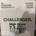 1 case of 410 #7.5 3” ammunition never opened! 20 boxes of 25 rounds/box 625.00 for case or 35.00/box