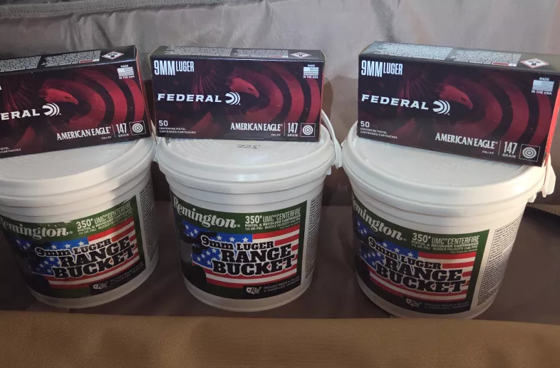 1172 rounds 9mm — Remington range buckets + Federal AE