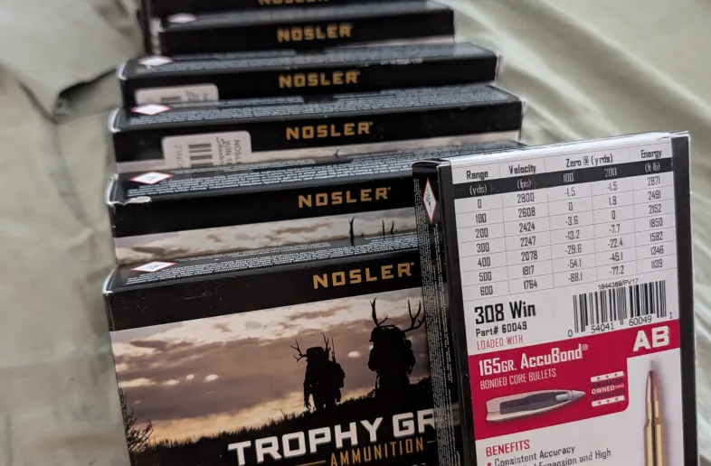 200 rounds of nosler trophy grade accubond 165 grain 308 Winchester bullets.